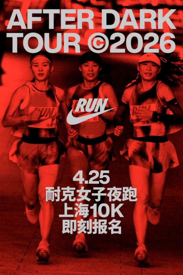 2026年耐克After Dark Tour女子全球夜跑系列赛如约而至,上海站将于4月25日率先开赛,赛事报名于3月13日中午12点开启。